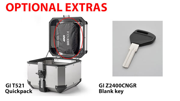 Givi Trekker Dolomiti is a simple option for rugged aluminium touring cases. The top-box mounts using Givi's patented and time proven MONOKEY® system and it takes just a few seconds to attach and release from the motorcycle. The system is simple, secure and extremely robust, making the Dolomiti range a great option for anyone looking for a more cost-effective aluminium touring case.